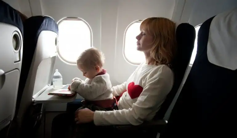 O ambiente diferente e a movimentação dos outros passageiros pode deixar o bebê agitado e ele não vai conseguir dormir em caso de voos à noite. Em voos diurnos, mesmo que ele fique acordado o tempo todo, você pode descansar quando chegar ao seu destino.
