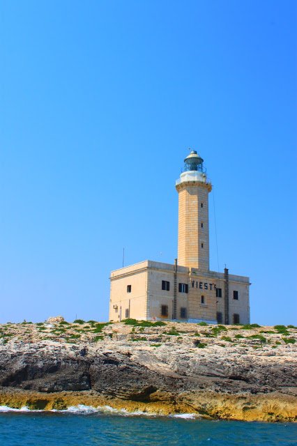 Projetado em 1867, é um dos maiores faróis da itália e um dos principais cartões postais de Vieste. Construído em cima de uma pedra que emerge do mar, um pouco. A noite ilumina toda a praia com o seu potente farol que se destaca na escuridão do mar aberto